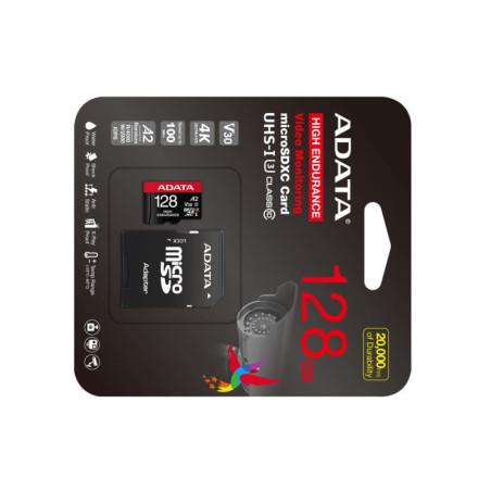 La tarjeta de memoria ADATA Micro SD 128GB DXC/SDHC UHS-I de alta resistencia V30 es una solución de almacenamiento robusta diseñada para satisfacer las demandas de grabación continua y regrabación constante. Con una capacidad de 128GB, esta tarjeta es perfecta para almacenar grandes cantidades de datos, ideal para aplicaciones como cámaras de tablero y sistemas de vigilancia que requieren grabaciones ininterrumpidas y fiables.\n\nEquipadas con la clase de velocidad de video 30 (V30), estas tarjetas garantizan una tasa de transferencia constante y rápida, lo que es esencial para la captura de video de alta definición sin interrupciones ni pérdidas de datos. Además, su clasificación de clase de rendimiento de aplicación 2 (A2) permite una ejecución más rápida y fluida de aplicaciones, mejorando la experiencia del usuario en dispositivos compatibles.\n\nLa construcción resistente de ADATA Micro SD 128GB DXC V30 está diseñada para soportar condiciones extremas. Son resistentes al agua, a los golpes y a los rayos X, lo que asegura que los datos almacenados estén protegidos incluso en entornos adversos. Esta durabilidad adicional hace que la tarjeta sea una opción confiable para usuarios que necesitan un almacenamiento seguro y duradero.\n\nEn resumen, la ADATA Micro SD 128GB DXC/SDHC UHS-I V30 combina alta capacidad, rendimiento superior y resistencia robusta, convirtiéndola en una excelente elección para quienes buscan una solución de almacenamiento confiable y eficiente para sus necesidades de grabación continua y aplicaciones exigentes.