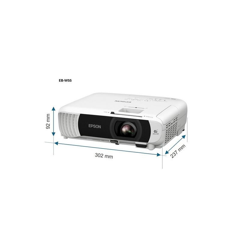 Experimenta imágenes brillantes y nítidas con el Proyector Epson PowerLite W55+. Ideal para entretenimiento doméstico y presentaciones profesionales, ofrece pantalla dividida y una imagen de hasta 300" para máxima versatilidad.El Proyector Epson PowerLite W55+ V11HB58021 ofrece una luminosidad de 4000 lúmenes y resolución WXGA (1280x800), ideal para proyectar imágenes nítidas y brillantes en pantallas de hasta 300 pulgadas. Soporta función de pantalla dividida que permite mostrar dos fuentes de video simultáneamente para presentaciones más dinámicas. Su tecnología 3LCD garantiza colores vivos y balanceados. Este modelo es adecuado tanto para uso doméstico como profesional, soportando conexión HDMI, VGA y USB para amplia compatibilidad. Cuenta con una vida útil típica de la lámpara cercana a 6000 horas en modo Eco. Los ajustes de imagen incluyen corrección trapezoidal vertical y zoom óptico para facilitar su instalación. Dimensiones aproximadas: 302 x 230 x 84 mm; peso estimado: 2.6 kg. Ideal para salas medianas a grandes, aulas, oficinas o salas de entretenimiento.
