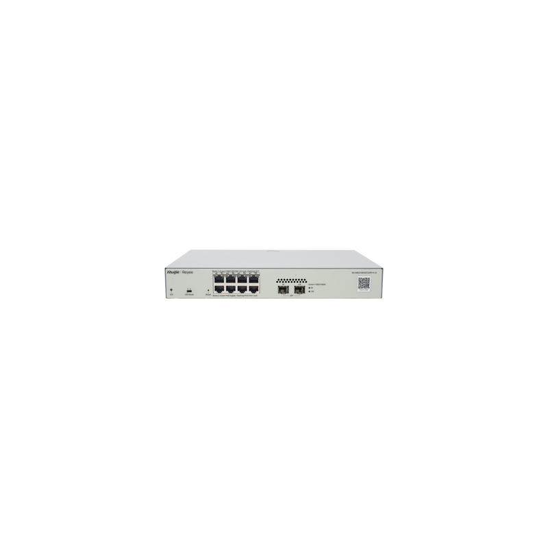 El Switch Administrable PoE Capa 2 de RUIJIE ofrece 8 puertos Gigabit PoE 802.3af/at y 2 puertos SFP para fibra 1Gb, permitiendo una gestión eficiente y flexible desde la nube. Con una potencia total de 125W, este switch es ideal para redes de tamaño pequeño a mediano, proporcionando conectividad fiable y fácil administración para sus dispositivos de red.