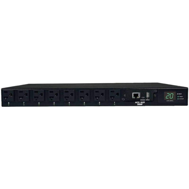 Multitoma PDU TRIPPLITE con medidor digital monofásico de 1.9kW, tomacorrientes de 120V (12 5-15/20R), L5-20P / 5-20P, entrada de 110-127V, cable de 4.57 m (15 pies), instalación en rack de 1U