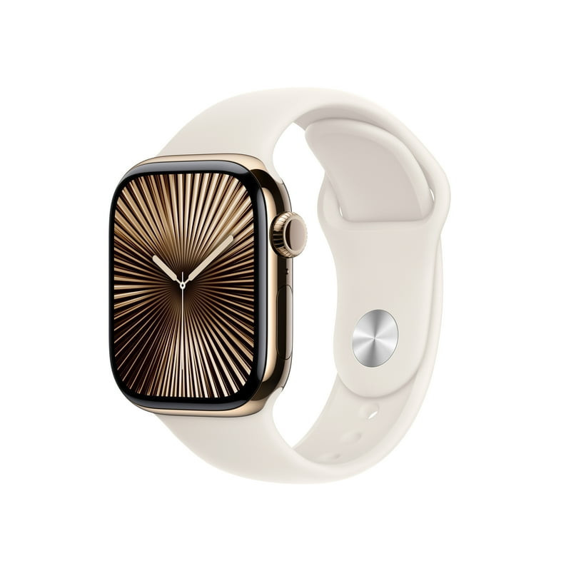 Apple Watch Series 10 GPS Cellular 42mm Gold Titanium Case with Starlight Sport Band - S M