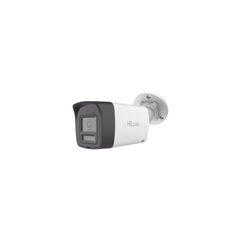 Cámara de seguridad bala IP con resolución de 2 megapíxeles, lente gran angular de 2.8 mm y tecnología Dual Light que integra iluminación IR y luz blanca hasta 20 metros para vigilancia en cualquier condición. Compatible con múltiples formatos de video y audio coaxial.