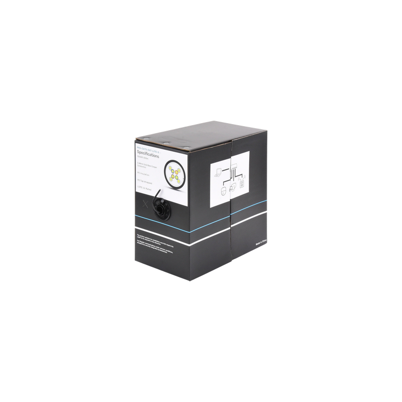 Bobina de 305 metros de cable Cat5e sin blindaje color negro, ideal para instalaciones de videovigilancia y redes de datos en exteriores. Resistente a intemperie para máxima durabilidad.
