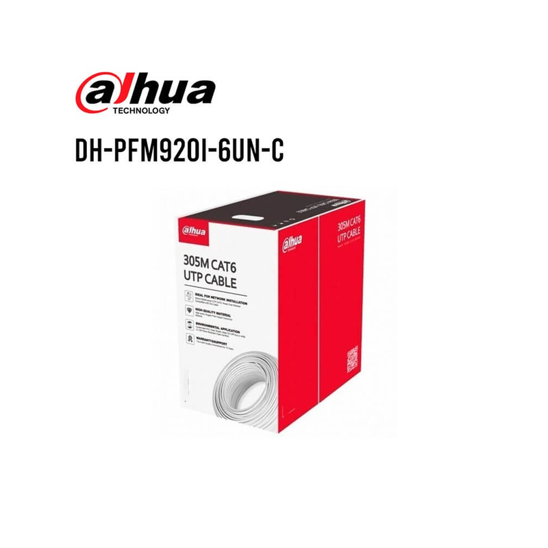 Cable UTP categoría 6 para uso interior con alta pureza de cobre libre de oxígeno (OFC) para conexiones de red optimizadas y reducción de interferencias. Presentación en caja de 305 metros.Cable UTP categoría 6 para uso interior, presentado en rollo/caja de 305 metros. Construido con conductor de cobre libre de oxígeno (OFC) de alta pureza (~99.97%) para mejorar la conductividad y resistencia a la corrosión. Cable sin blindaje (UTP), destinado para transmisión de datos en redes Ethernet con velocidades de hasta 1 Gbps y frecuencias de hasta 250 MHz. Conductor sólido de 23 AWG, cuatro pares trenzados para minimizar interferencias electromagnéticas y diafonía. Cumple con estándares ANSI/TIA-568-C.2 para cables CAT6, recomendados para aplicaciones en interiores donde se requiere alta integridad de señal y durabilidad. Referencia SKU: DH-PFM920I-6UN-C.