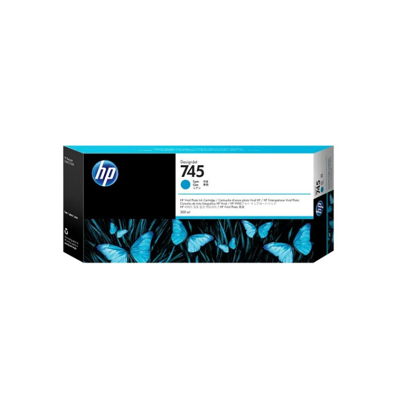 Cartucho de tinta cyan original HP 745 DSJ de alta capacidad con 300 ml, ideal para impresión profesional y de alta calidad. Compatibilidad garantizada y excelente rendimiento para tus proyectos de impresión.