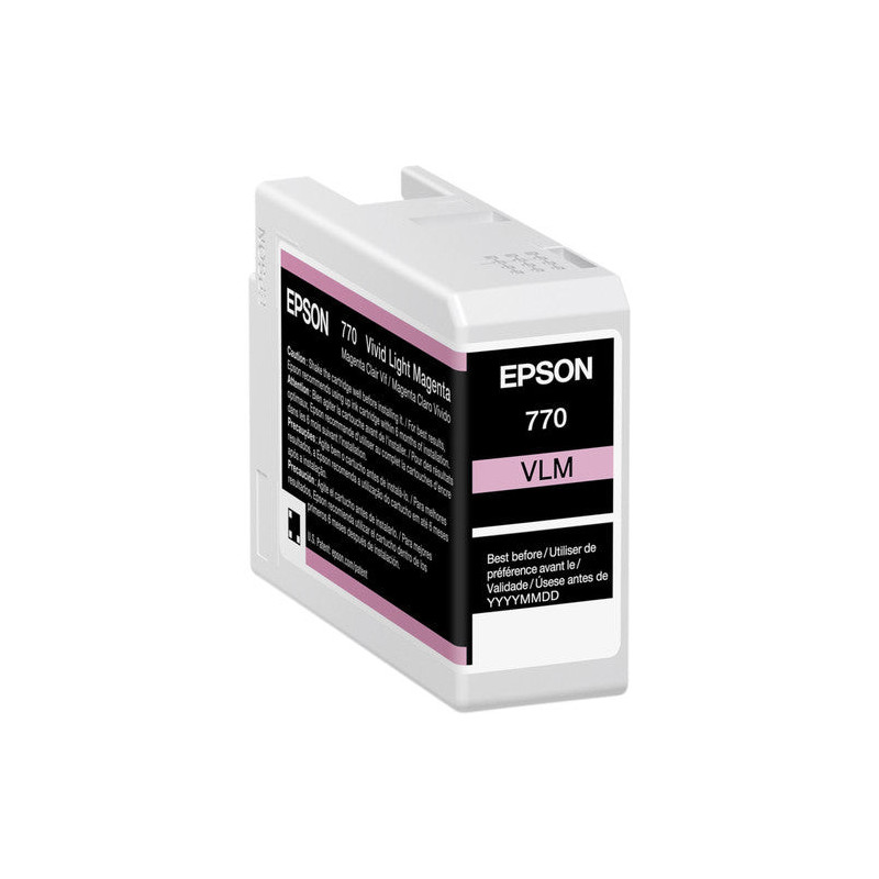 Cartucho original Epson T770 de tinta Magenta Claro de 25 ml, con tecnología UltraChrome PRO para impresiones con colores vivos, alta durabilidad y resistencia a humedad y fricción.