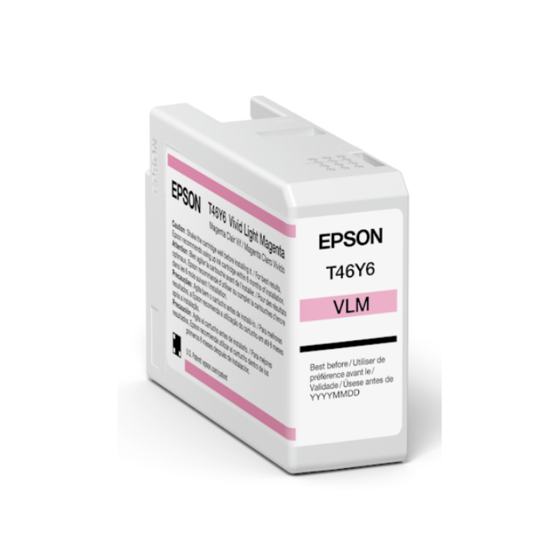 Cartucho de tinta Epson UltraChrome PRO10 Vivid Light Magenta de 50 ml, ideal para profesionales que buscan impresiones vibrantes y duraderas con un gamut de color ampliado gracias a su tinta de 10 colores pigmentados.Cartucho de tinta Epson C13T46Y600 UltraChrome PRO10 de color Vivid Light Magenta con capacidad de 50 ml. Este cartucho pertenece a la gama UltraChrome PRO10, una tinta de 10 colores pigmentados diseñada para ofrecer impresiones profesionales de gran durabilidad y un gamut de color ampliado con incorporación del color violeta. La tecnología patentada de tinta pigmentada Epson garantiza resistencia a la luz y longevidad archivística, ideal para fotógrafos y artistas profesionales que requieren alta fidelidad cromática y estabilidad en sus impresiones. Compatible con impresoras Epson específicas que utilicen sistema de tinta de 10 colores UltraChrome PRO10. Presentación: paquete individual (single pack). SKU: C13T46Y600.