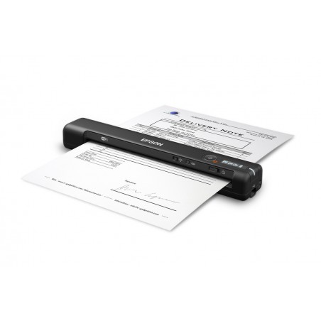 Escáner Epson portátil inalámbrico a una faz y a color con alimentación manual (cara abajo). Ideal para escanear documentos de forma rápida y sencilla.