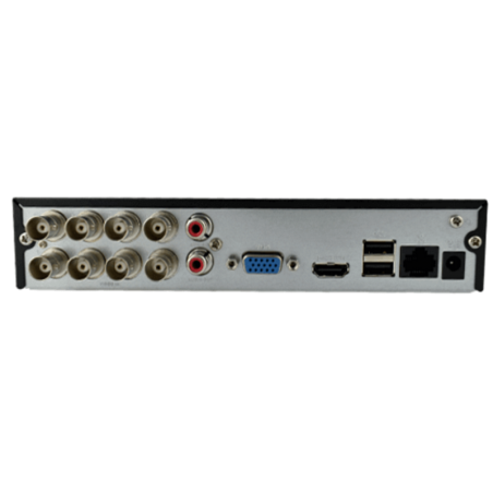 Grabador Dahua XVR de 8 Canales con tecnología Penta-brid para grabación en CVBS/HDCVI/AHD/TVI/IP. Compatible con H264+/H265+ y entrada/salida de audio. Capacidad de hasta 6TB (Disco Duro No incluido).