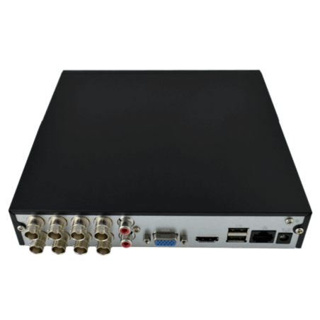 8 Canales, Inteligencia Artificial, Penta-brid (CVBS/HDCVI/AHD/TVI/IP), H264+/H265+, Audio in/out. Hasta 6TB (Disco Duro No incluido)