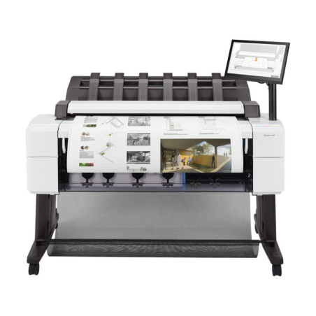 Print speed 180 A1/D hr, A1/D in 19.3 sec on plain media,Print resolution Up to 2400 x 1200 optimized dpi ,Technology HP Thermal Inkjet,Ink types Dye-based (C, M, Y, pK, G); pigment-based (mK),Maximum scan width JPEG-36 x 315 in (914 x 8000 mm); TIFF-24 x 590.5 in (610 x 15,000 mm); PDF-36 x 315 in,Sheet feed, front-loading roll feed, roll switching , integrated 100 page output stacker, media bin, automatic horizontal cutter ,Memory 128 GB,Hard Disk 500 GB self-encrypting,Print languages (standard) PostScript Printer: Adobe PostScript 3, Adobe PDF 1.7, HP-GL/2, HP-RTL, TIFF, JPEG, CALS G4,dos alimentaciones de rollos de carga frontal automática