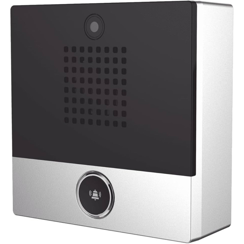 Mini Intercomunicador para hotelería y hospitales, con diseño elegante, PoE, 1 botón, 1 relevador integrado de salida y entrada.