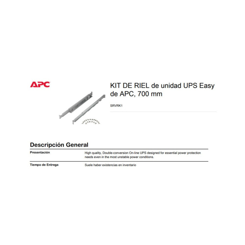 El Kit de rieles APC Easy UPS de 700MM es ideal para instalar tu UPS de forma rápida y sin complicaciones. Con una longitud de 700MM, este kit garantiza una instalación segura y estable. ¡Asegura la protección de tu equipo con APC!