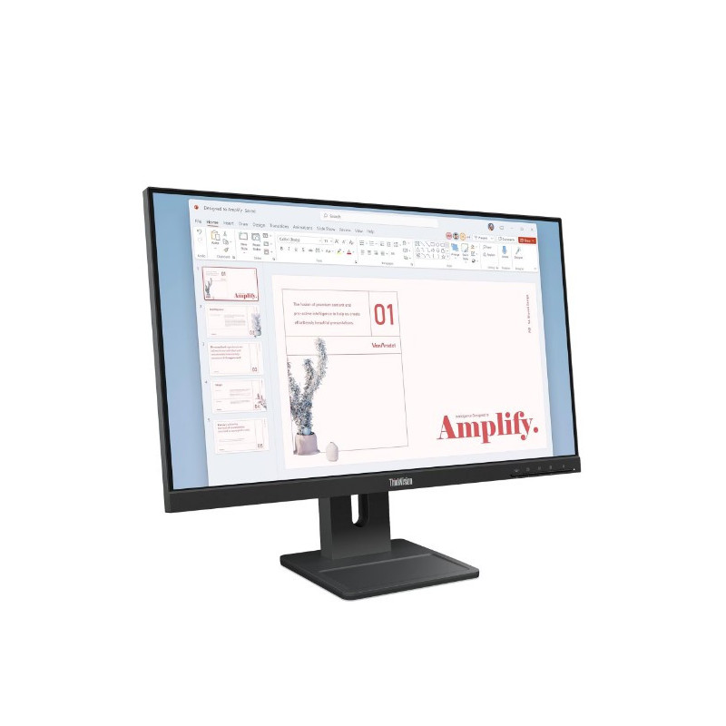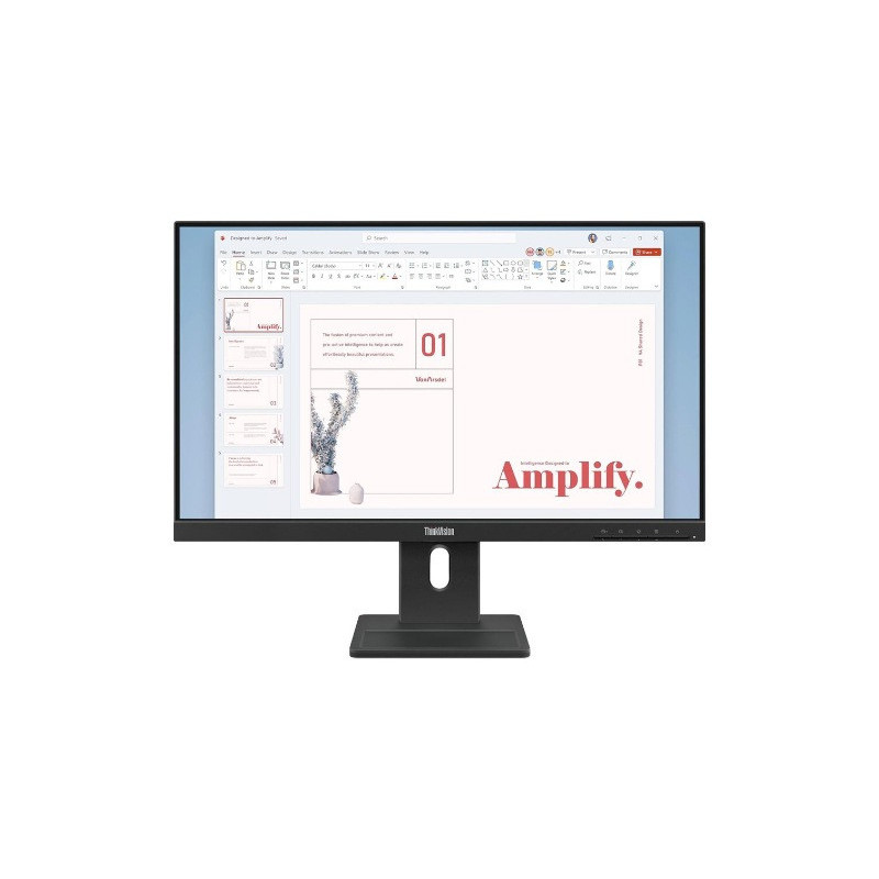 Disfruta de imágenes nítidas y colores vibrantes con el monitor Lenovo ThinkVision E24-40, un display Full HD de 23.8" con tecnología IPS para una visión amplia y cómoda. Perfecto para profesionales y uso diario con diseño ajustable y múltiples conexiones.El Lenovo ThinkVision E24-40 es un monitor LED de 23.8 pulgadas (60.5 cm) con resolución Full HD 1920x1080 píxeles y ratio de aspecto 16:9. Cuenta con panel IPS (In-Plane Switching) que ofrece amplios ángulos de visión y reproducción de colores precisos a 16.7 millones de colores. Su retroiluminación es mediante WLED que garantiza uniformidad y eficiencia energética. La pantalla tiene un brillo de 250 cd/m² y un tiempo de respuesta de 4 ms, con una tasa de refresco de 100 Hz para una experiencia visual fluida.Dispone de altavoces integrados para audio sin necesidad de periféricos adicionales. Su diseño ergonómico permite ajustes de altura, giro (rotación horizontal), pivote (rotación vertical) e inclinación para mejorar la comodidad durante el uso. Las interfaces de conexión incluyen HDMI, VGA y DisplayPort, ampliando su compatibilidad con diversos dispositivos. Además, es compatible con montura VESA para instalación en brazos o soportes externos.El modelo tiene referencia/SKU 64BAMAR1LA y presenta un acabado en negro oscuro. Ideal para oficinas y entornos profesionales que requieran calidad visual y flexibilidad de uso.