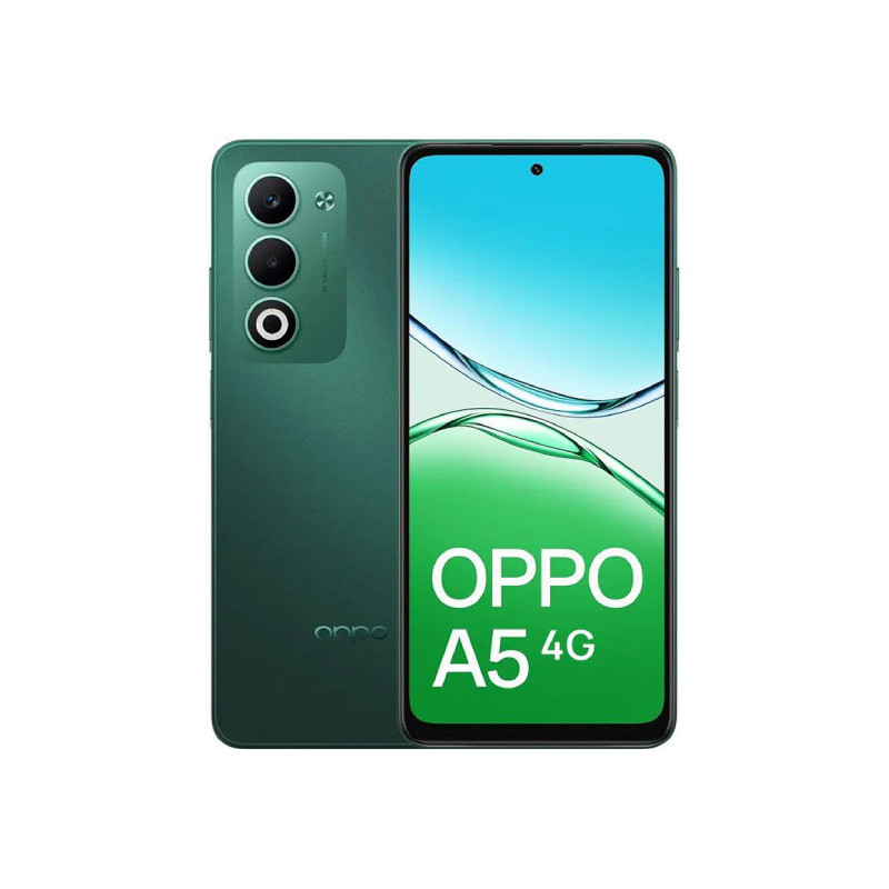 Descubre el OPPO A5 4G en color verde, con 256GB de almacenamiento y 4GB de RAM para un rendimiento fluido y espacio amplio para tus aplicaciones y archivos.