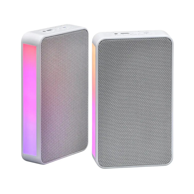 Disfruta un sonido potente y envolvente con los parlantes dobles VTA 16W. Conectividad Bluetooth 5.3, luces LED audiorrítmicas y función TWS para emparejamiento inalámbrico. Batería recargable con hasta 4 horas de autonomía y diseño para montaje en pared, ideales para gamers y amantes del audio dinámico.