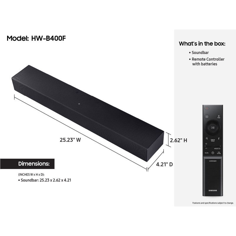 No hay más artículos en su carritoSamsung Sound Bar B400F 2CH con Bluetooth – Garantía 1 Año