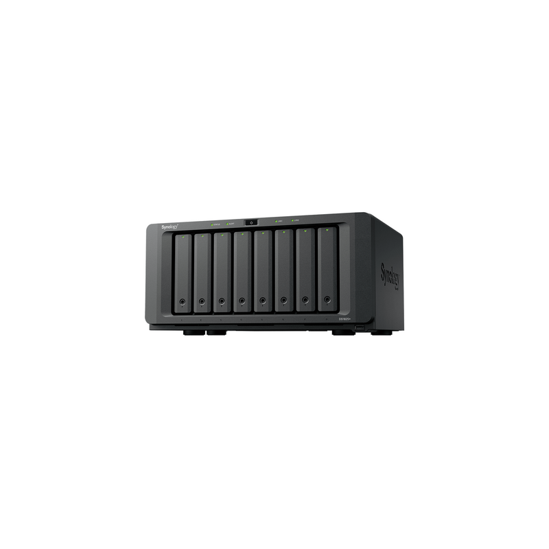 Potente Servidor NAS Synology DS1825+ con 8 bahías, expandible hasta 18, soporte para hasta 324TB de almacenamiento, 4GB de RAM y funciones avanzadas como servicio de nube gratis P2P y administración remota para respaldo programado.El Servidor NAS Synology DS1825+ ofrece 8 bahías para discos duros, expandibles hasta 18 mediante soportes de expansión compatibles, permitiendo un almacenamiento máximo de hasta 324 TB. Cuenta con 4 GB de memoria RAM DDR4, ampliable para mejorar el rendimiento multitarea y la gestión de múltiples usuarios y tareas. Integra un servicio de nube personal gratuito con tecnología punto a punto (P2P) para compartir archivos de manera segura y eficiente. La administración remota permite controlar y programar respaldos de manera automatizada, facilitando la copia de seguridad continua de datos críticos. Soporta configuraciones RAID diversas para equilibrar rendimiento y redundancia, y dispone de conexiones Ethernet Gigabit para transmisión rápida de datos. Ideal para pequeñas y medianas empresas que requieran almacenamiento escalable, seguro y con administración sencilla.