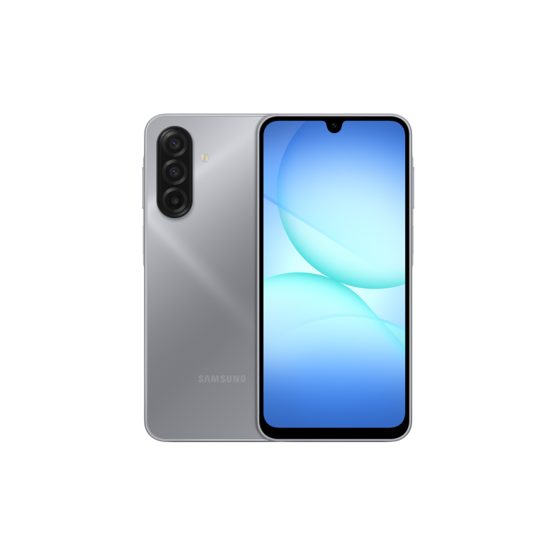 Experimenta rendimiento y estilo con el Samsung Galaxy A17: 8GB RAM, 256GB almacenamiento, pantalla Super AMOLED de 6.7", cámaras potentes y batería de larga duración de 5000mAh.El Samsung Galaxy A17 (modelo SM-A175FZAHLTC) es un smartphone de gama media equipado con conectividad 5G y sistema operativo Android 15. Cuenta con una pantalla táctil Super AMOLED de 6.7 pulgadas con resolución Full HD+ de 1080 x 2340 píxeles que ofrece alta calidad visual. El dispositivo está potenciado por un procesador MediaTek Helio G99 (MT6789), arquitectura octa-core que integra un Dual-core Cortex A76 a 2.20 GHz y un Hexa-core Cortex A55 a 2.0 GHz para un balance óptimo entre rendimiento y eficiencia energética. Dispone de 8GB de memoria RAM para multitarea fluida y almacenamiento interno de 256GB sin restricción de SIM (SIM-free), con doble ranura para SIM, soportando funcionalidad Dual SIM. El apartado fotográfico incluye cámara trasera triple con sensores de 50 megapíxeles (principal), 5 megapíxeles y 2 megapíxeles, además de cámara frontal de 13 megapíxeles para selfies y videollamadas. Alimentado por una batería de 5000mAh, garantiza una autonomía prolongada para uso diario intensivo. Está disponible en color gris y cuenta con soporte de comunicación de campo cercano (NFC). El diseño es tipo barra con un factor de forma ergonómico.