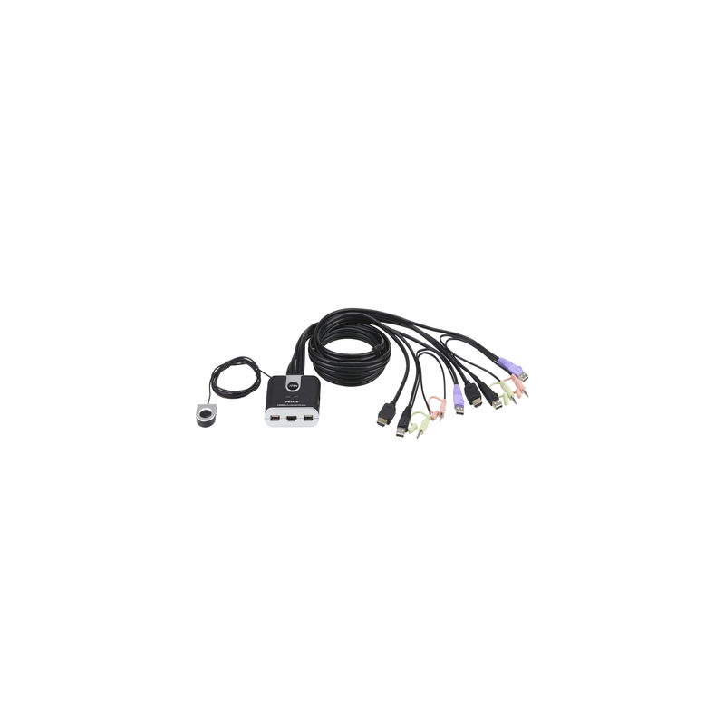 Switch KVM formato cable HDMI/Audio USB de 2 puertos con selector remoto de puerto