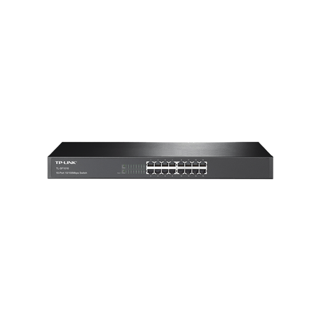 Switch TPLINK de montaje en rack de 16 puertos 10/100Mbps que ofrece alto rendimiento, bajo costo y eficiencia energética para actualizar su red a 100Mbps.