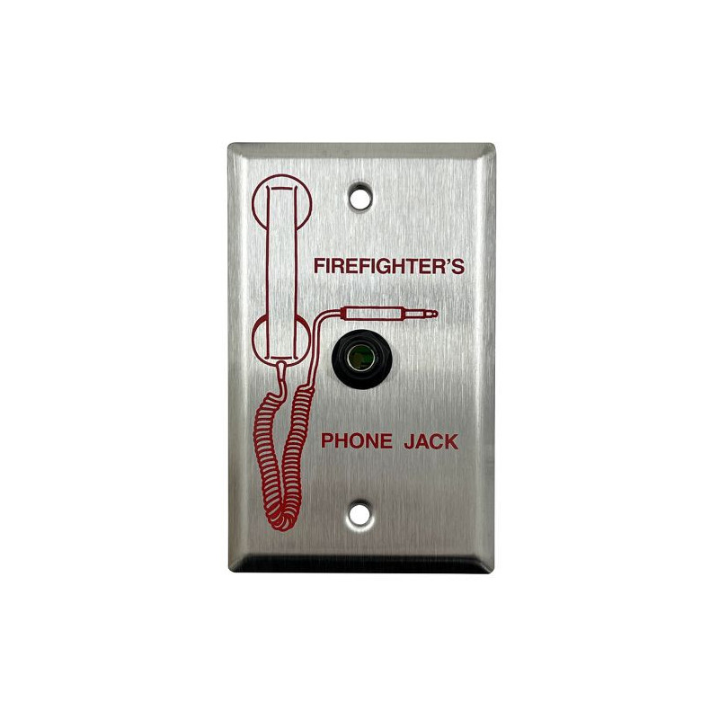 Dispositivo esencial para llamadas de emergencia, montaje en placa estándar 2x4, diseñado para facilitar la comunicación rápida y segura en situaciones de incendio.Toma de teléfono para sistema de emergencia de bomberos montada sobre una placa de dimensiones estándar 2x4 pulgadas (aproximadamente 50.8mm x 101.6mm). Este dispositivo está diseñado para instalarse en paneles o paredes estandarizadas, permitiendo la conexión de líneas telefónicas específicas para uso en situaciones de incendio o emergencia. Fabricado con materiales resistentes y conformes con normativas básicas para dispositivos de emergencia. Incluye los conectores necesarios para integrar la línea telefónica a sistemas de comunicación interna. Referencia de producto: FPJ. Marca no especificada.